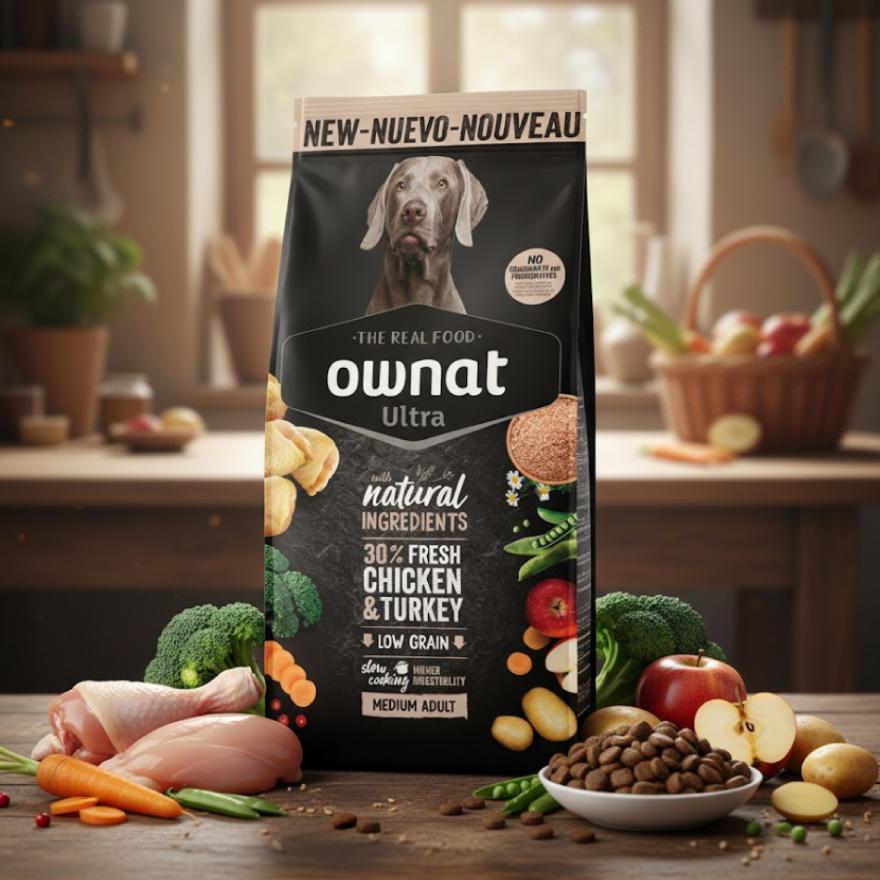 A solução é Ownat Ultra! Com 30% Frango e Peru Fresco, esta fórmula tem um sabor irresistível e permite ao teu cão absorver o máximo de nutrientes essenciais, eliminando problemas.